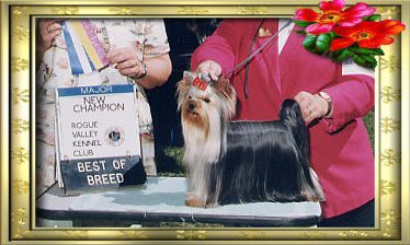 . DONALD IS THE PROUD SIRE OF TWO SPECIALTY WINNERS! CH. JENI-LANE'S JUMP-START AND CH. JENI-LANE'S UP-UP-N-AWAY . BOTH OF THESE DOGS WON AT THE "YORKSHIRE TERRIER CLUB OF GREATER HOUSTON" IN 2001 . DONALD IS ALSO THE SIRE OF CH. SHAKESPEARE'S BRAVE-HEART OUT OF CH. SWEETHEART WALK ME HOME SUE SHAKESPEARE'S WINK-WINK (TWINKIE) . GRAND SIRE TO CH. SHAKESPEARE'S MICHAEL-SIMON AND CH. SHAKESPEARE'S SUSAN BRISTOL |
