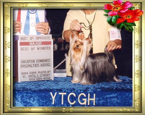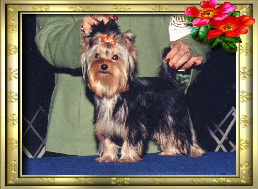 AM/CAN CH. PASTORAL UP-START X SHAKESPEARE'S ZENNA . TWINKIE SHOWN GOING 2ND IN 6-9 MONTH PUPPY CLASS, (2 PTS.) SHE IS NOW LIVING WITH MARY ANN CONDIT--KANKAKEE, ILL. MARY ANN HAS PUT 5 MORE POINTS ON HER!! CONGRATULATIONS TO MARY ANN AND TWINKIE!! . MARY ANN AND TWINKIE WENT 2ND IN THE OPEN BITCH CLASS AT THE NEW YORK SPECIALTY 2004 YORKSHIRE TERRIER CLUB OF GREATER NEW YORK... |